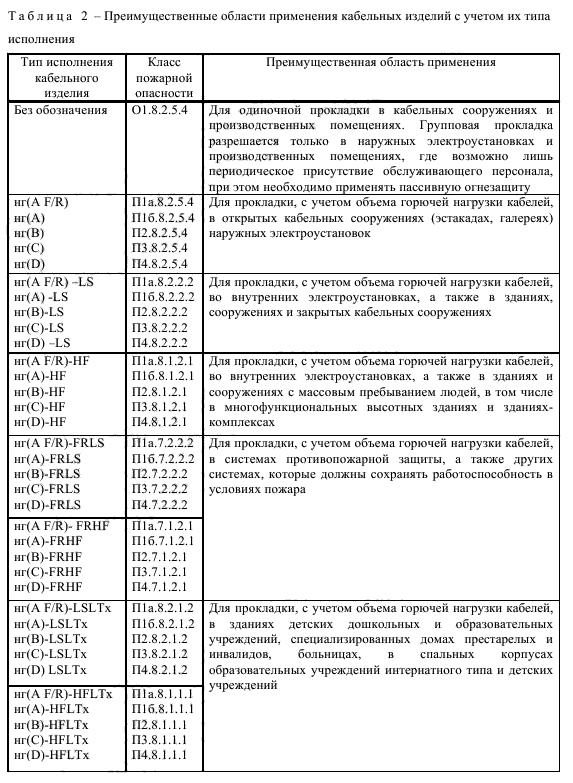 Кабели нг-LSLTx и нг-HFLTx по ГОСТ 31565-2012 применяются в детских, дошкольных или общеобразовательных сооружениях, в домах престарелых и инвалидов, госпиталях, то есть в объектах, где возможно длительное нахождение маломобильных граждан.