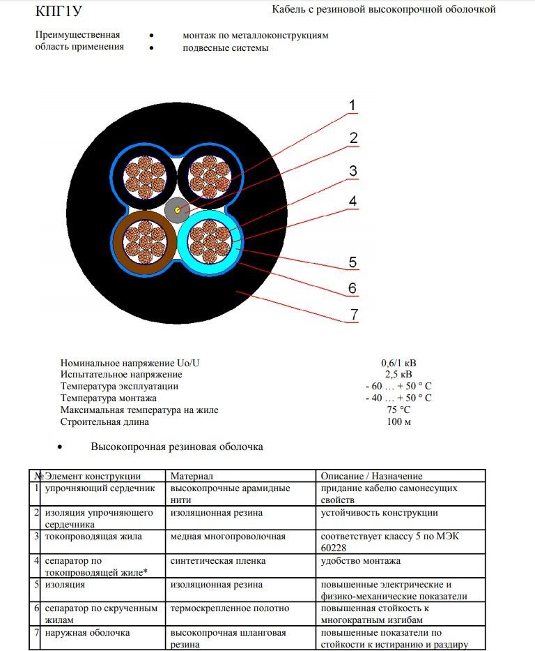 Спецификация кабеля КПГ1У 27х2,5: