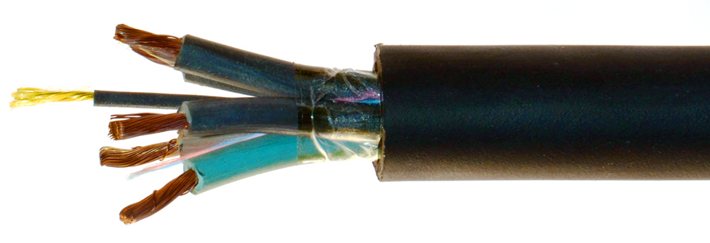 Усиленный крановый кабель КПГ1У выпускается только с сердечником на основе синтетических волокон (арамид) в резиновой изоляции. Покупайте оригинальный кабель и остерегайтесь подделок!Строение кабеля КПГ1У 5х6: