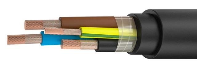 • цветовая: коричневый, черный, голубой, заземляющая жила - желто-зеленая;