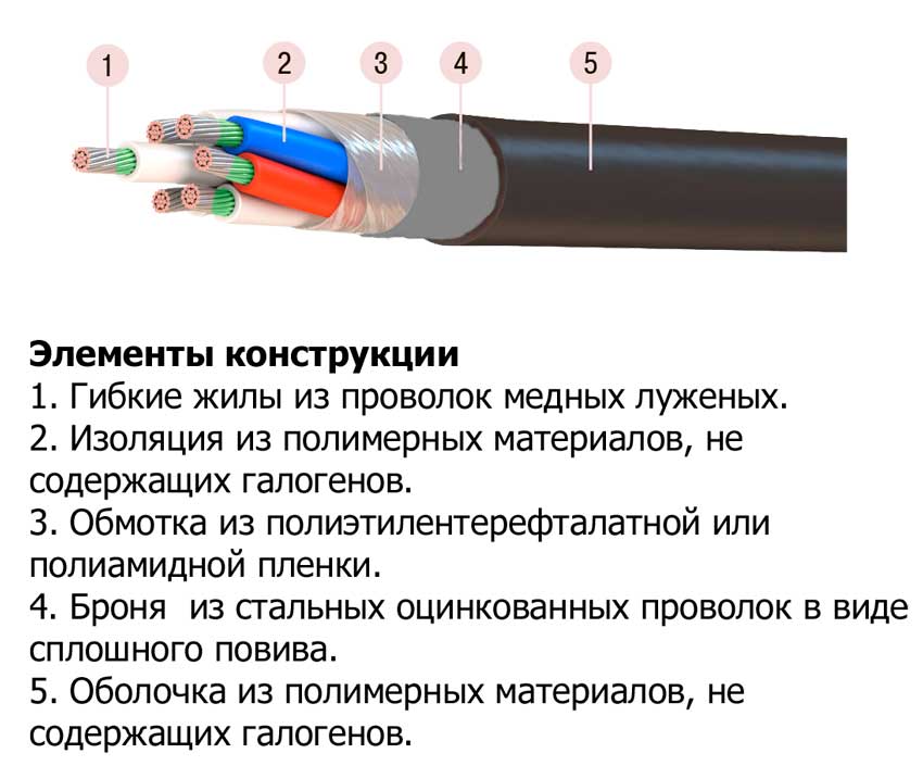 Проводник – многопроволочная медная луженая 3 класса гибкости по ГОСТ 22483. По согласованию с потребителем возможно изготовление токопроводящих жил из медных нелуженых проволок.Термобарьер – обмотка из слюдосодержащих лент.