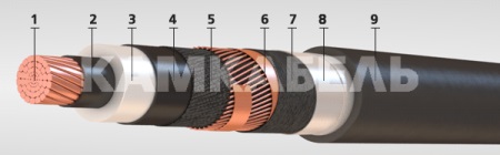 1. Круглая многопроволочная уплотненная проводник из меди, сечением от 50 до 800 кв. мм;2. Экранная защита по жиле из полупроводящего сшитого ПЭТ, полученного методом экструзии;